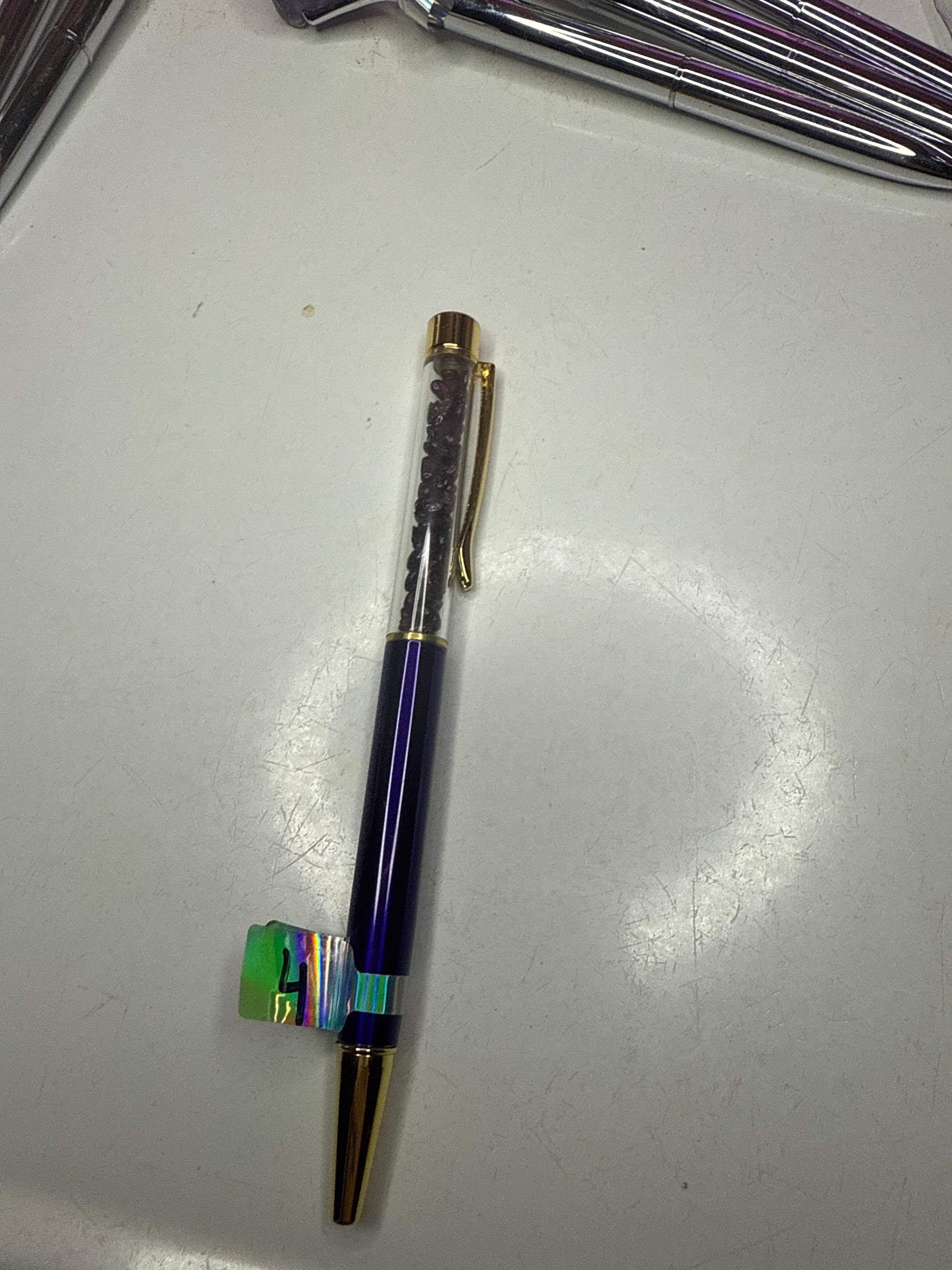 Purple pen with garnet chips & black ink